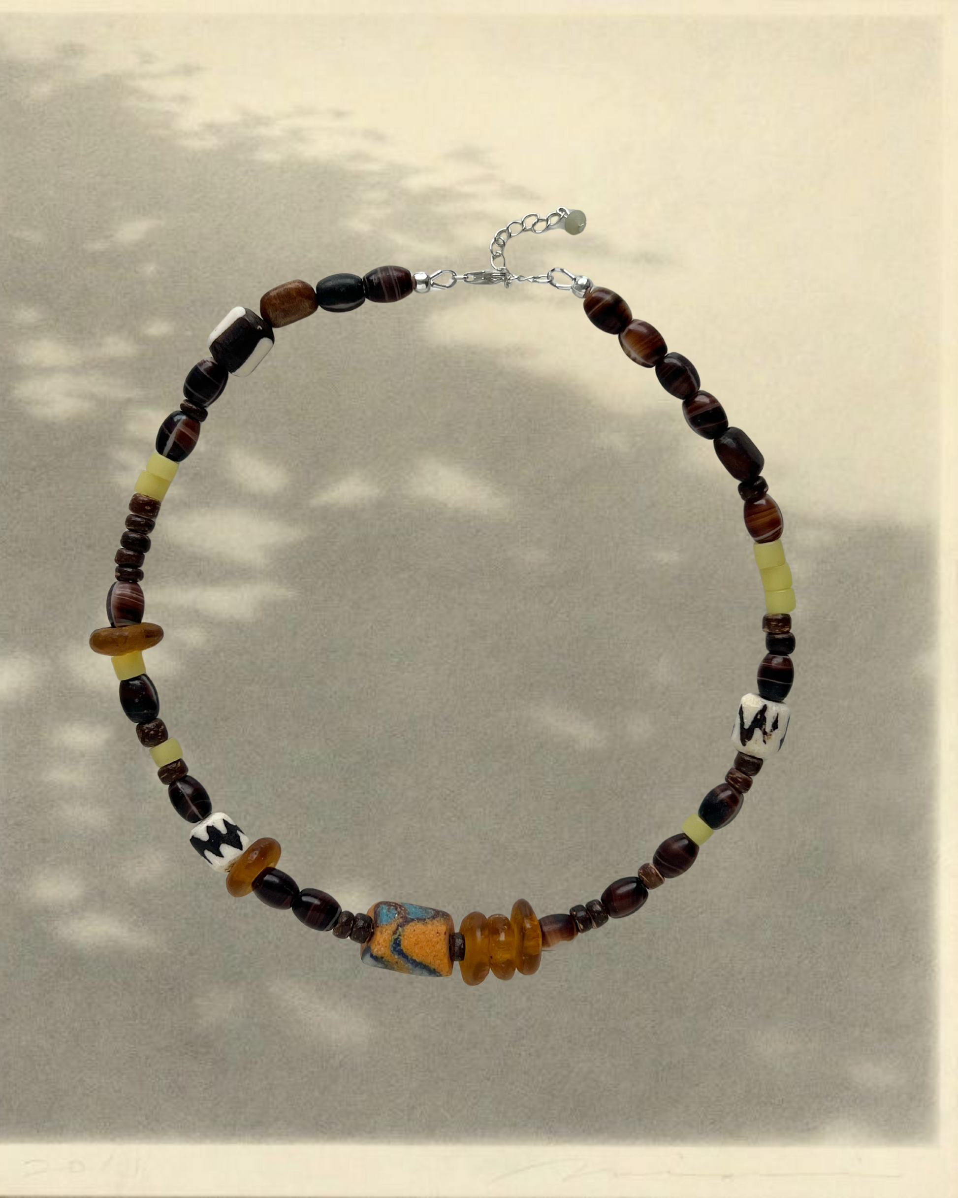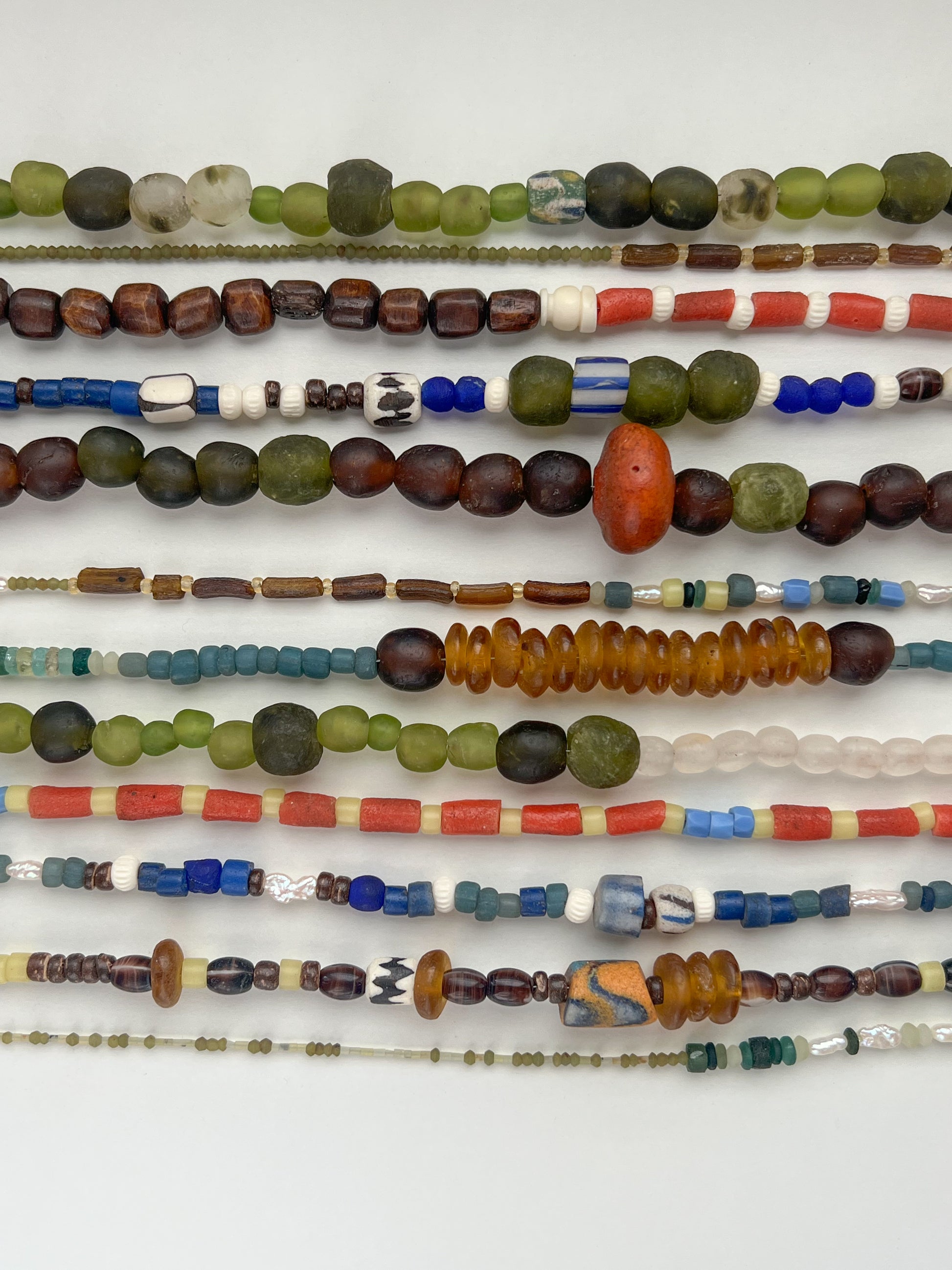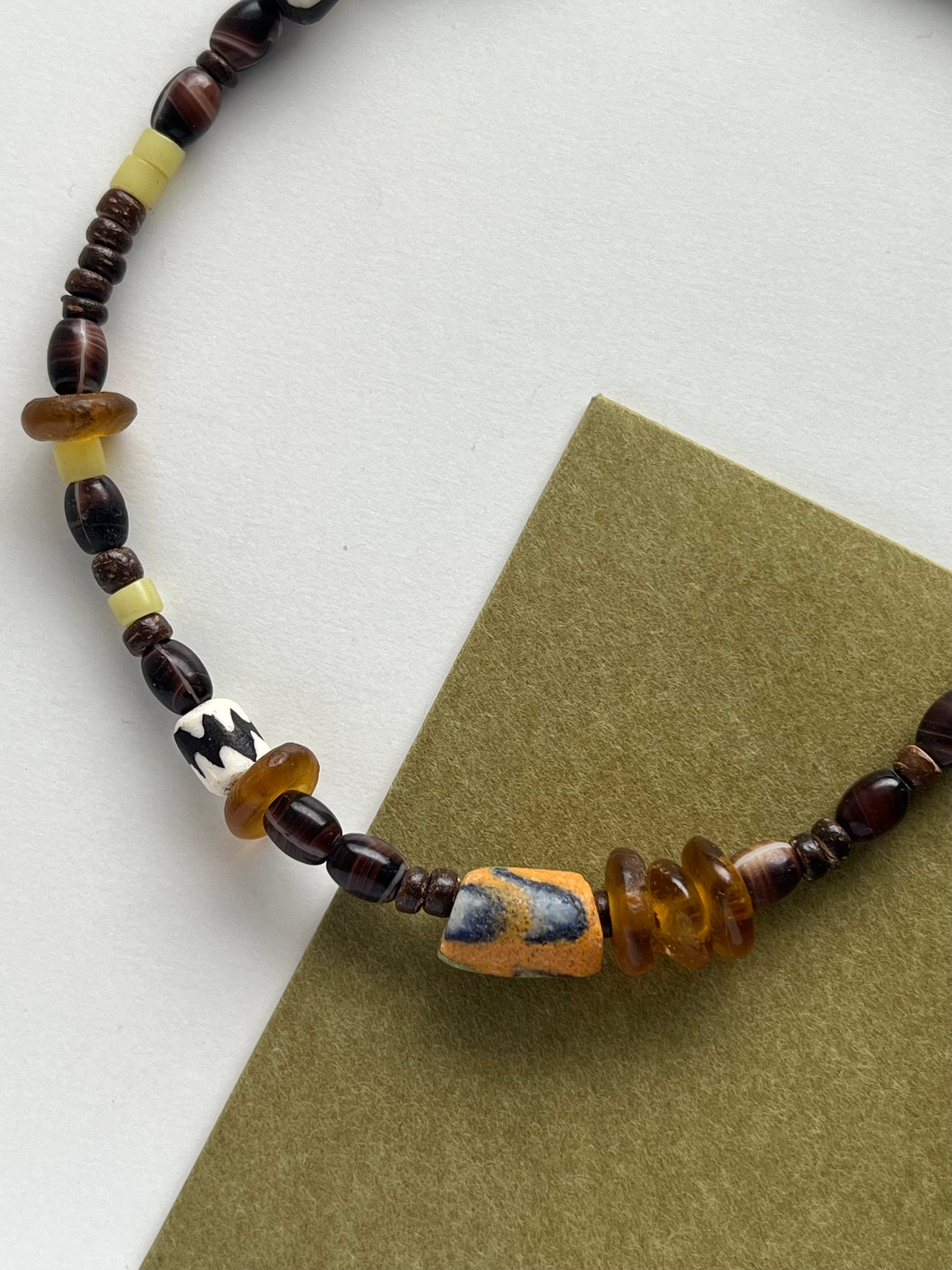 Vintage handcrafted beads from all over the world, that were once a significant part of global trade, used as currency and valued for their beauty and craftsmanship, now mindfully curated into statement chokers, waiting to be adorned by you.