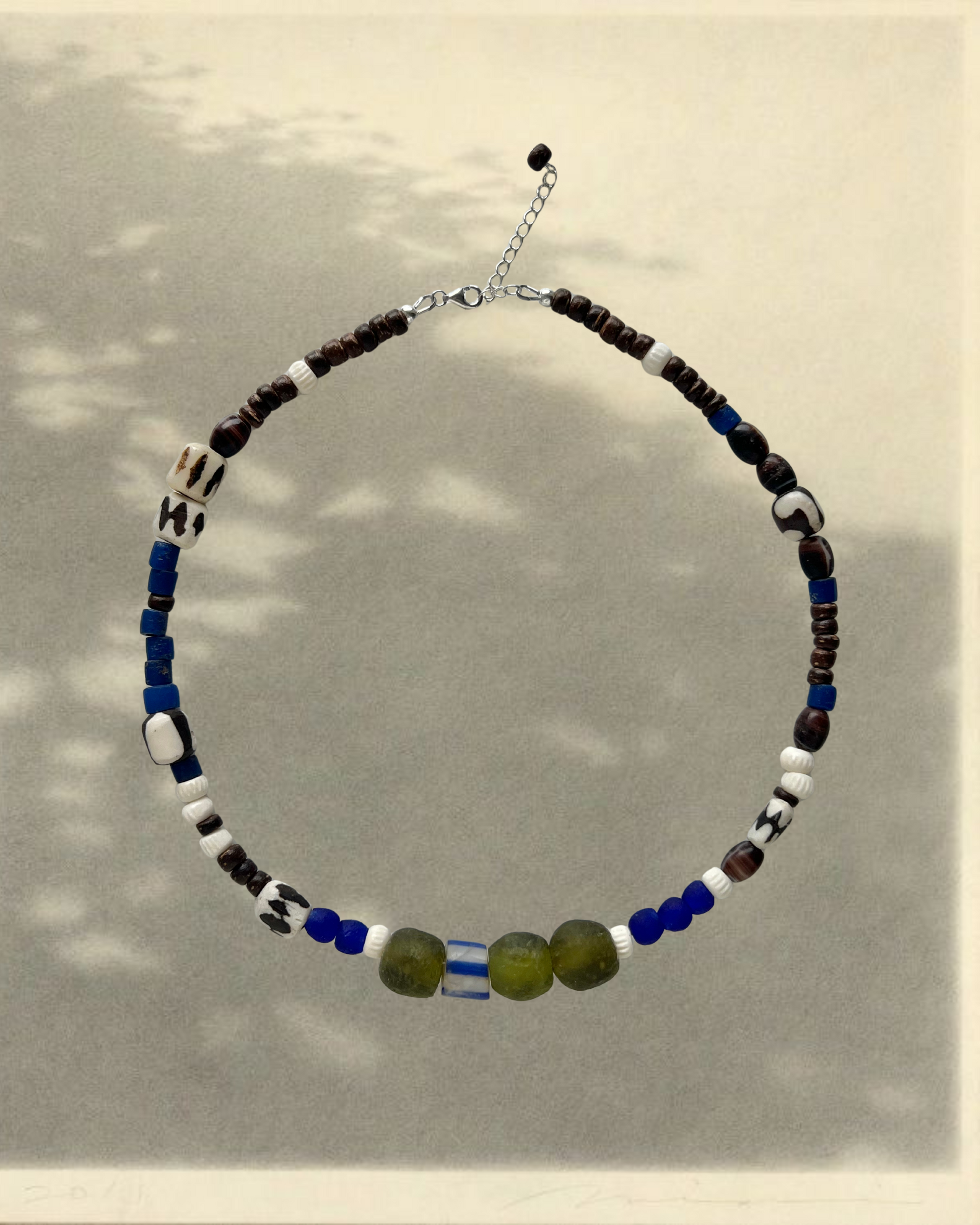 Vintage handcrafted beads from all over the world, that were once a significant part of global trade, used as currency and valued for their beauty and craftsmanship, now mindfully curated into statement chokers, waiting to be adorned by you.