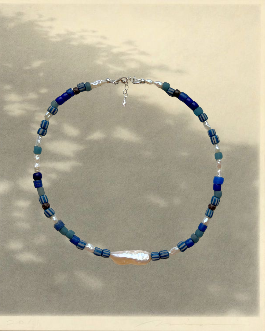 Vintage handcrafted beads from all over the world, that were once a significant part of global trade, used as currency and valued for their beauty and craftsmanship, now mindfully curated into statement chokers, waiting to be adorned by you.