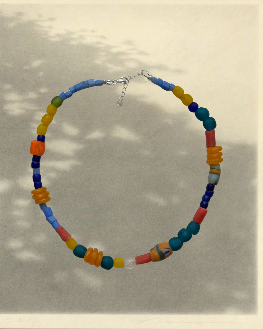 Vintage handcrafted beads from all over the world, that were once a significant part of global trade, used as currency and valued for their beauty and craftsmanship, now mindfully curated into statement chokers, waiting to be adorned by you.