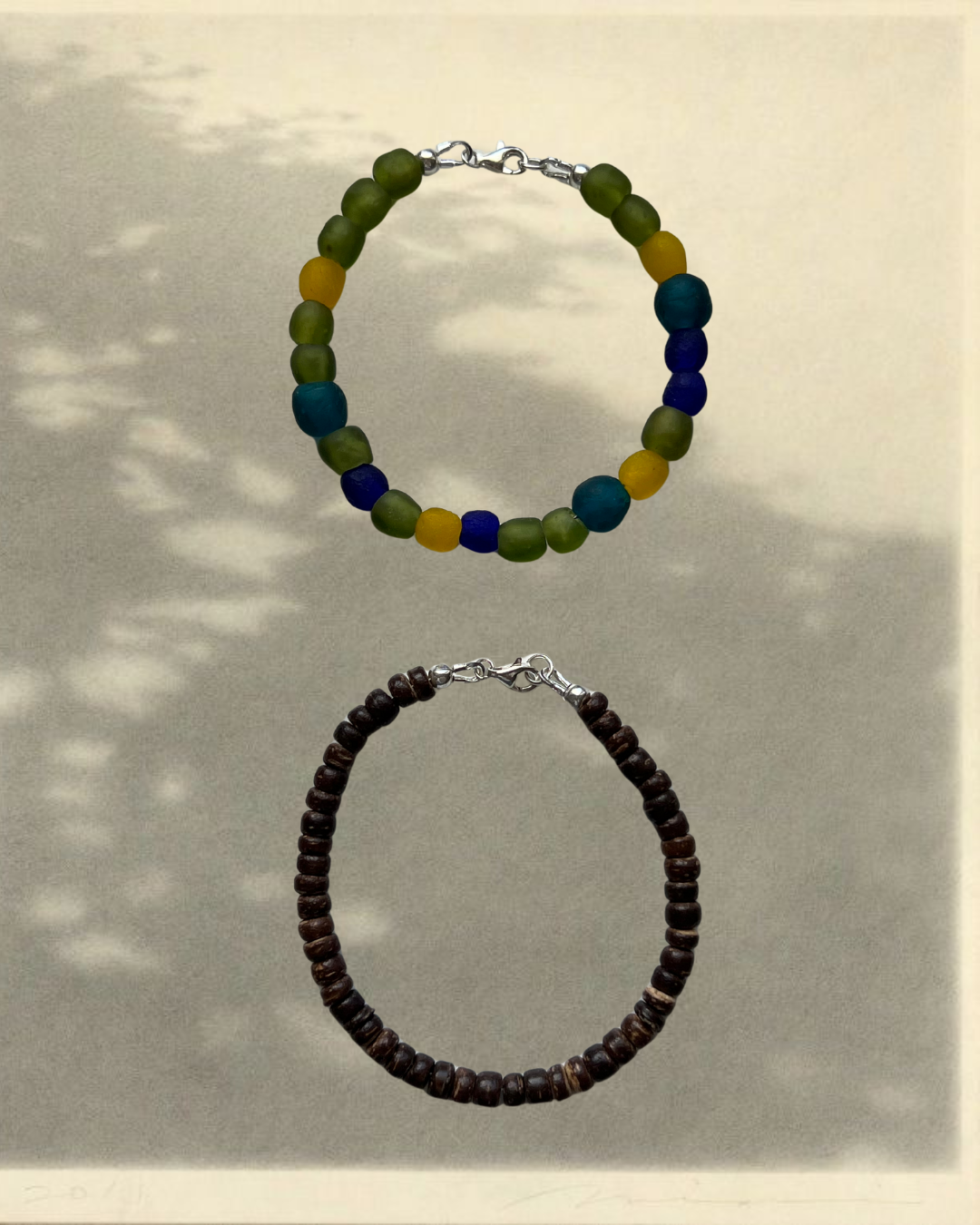 Vintage handcrafted beads from all over the world, that were once a significant part of global trade, used as currency and valued for their beauty and craftsmanship, now mindfully curated into a statement bracelet, waiting to be adorned by you.