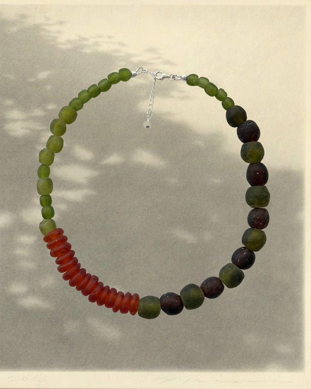 Vintage handcrafted beads from all over the world, that were once a significant part of global trade, used as currency and valued for their beauty and craftsmanship, now mindfully curated into statement chokers, waiting to be adorned by you.
