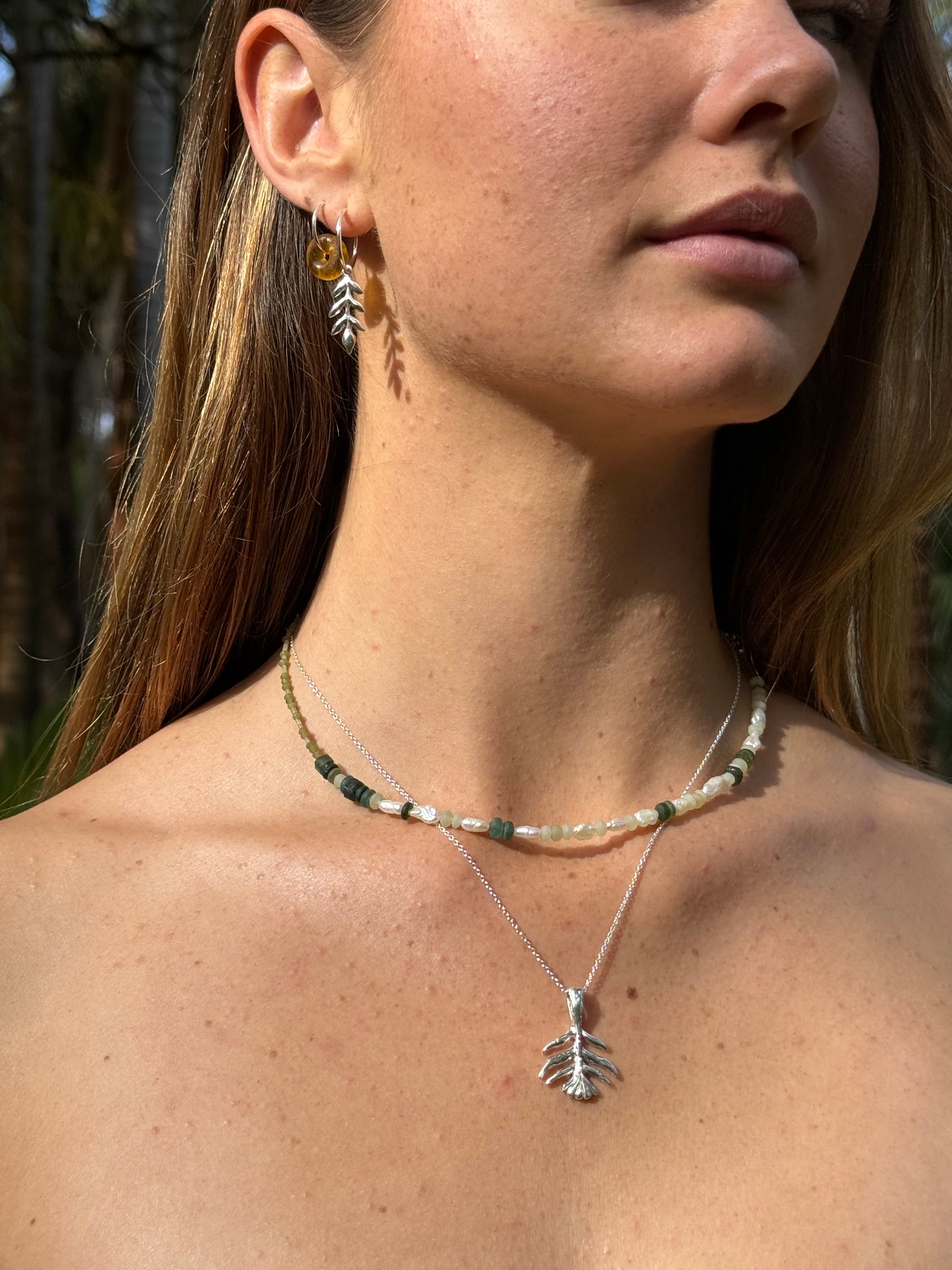 Handcrafted using centuries-old African techniques, these recycled glass beads are shaped from powdered glass and fired in clay molds. Each bead carrying its own subtle texture and story.