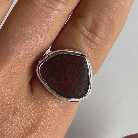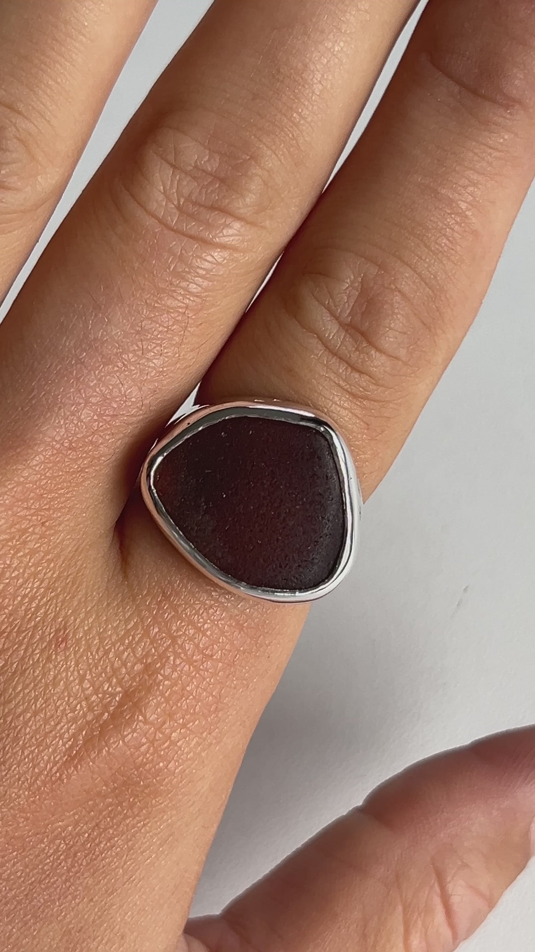 Brown sea glass, picked up on my travels around Australia, encased in a solid sterling silver signet ring.