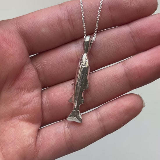 4cm fish hung on a dainty 42cm sterling silver chain.
