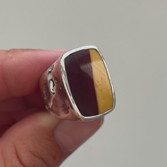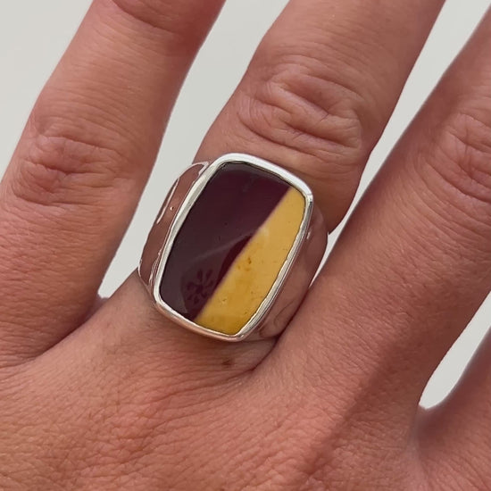 Two tone Jasper, encased in a solid sterling silver ring with an organic band.