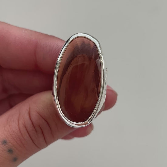 Imperial jasper, encased in a solid sterling silver signet ring.