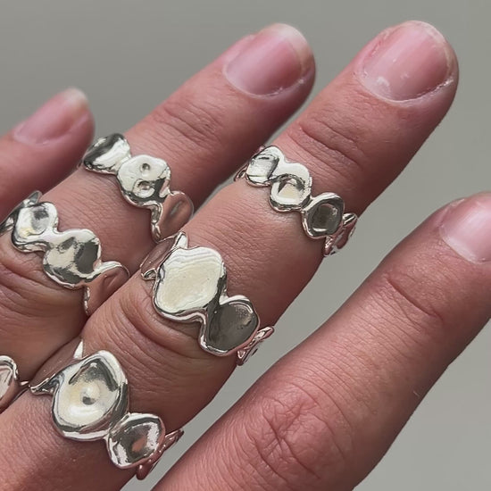Solid sterling silver puddles formed into a ring with lots of organic textures.
