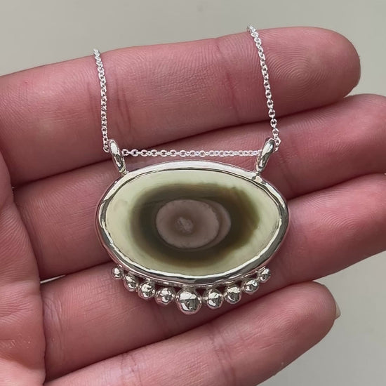 Imperial jasper stone set in an hand formed, solid sterling silver pendant on a dainty 42cm sterling silver chain.