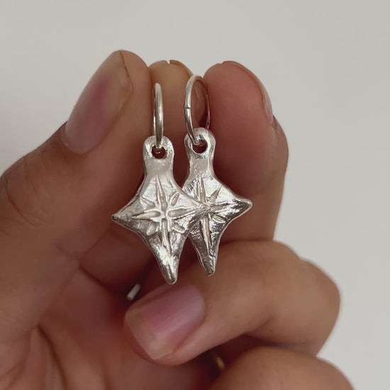 Hand formed organic solid sterling silver star charms on 8mm sterling silver sleeper hoops.