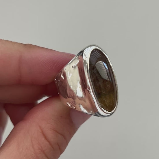 Bi-colour brown tourmaline, encased in a solid sterling silver signet ring.