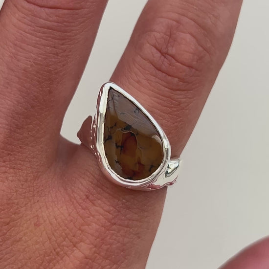 Rare brown Tibetan turquoise, encased in a solid sterling silver signet ring.